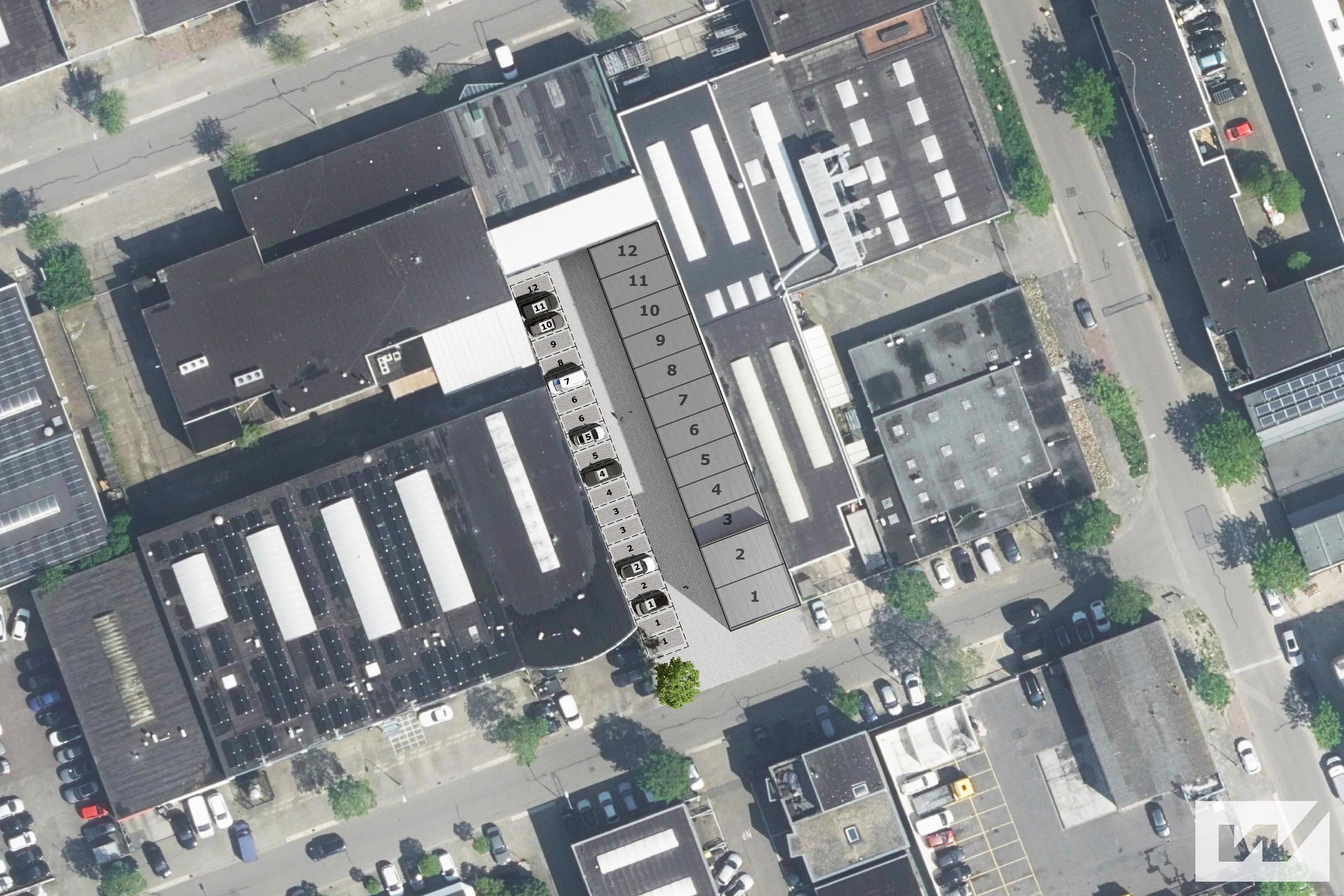 Het bedrijfsverzamelgebouw omvat in totaal 12 bedrijfsunits, verdeeld over twee of drie bouwlagen.