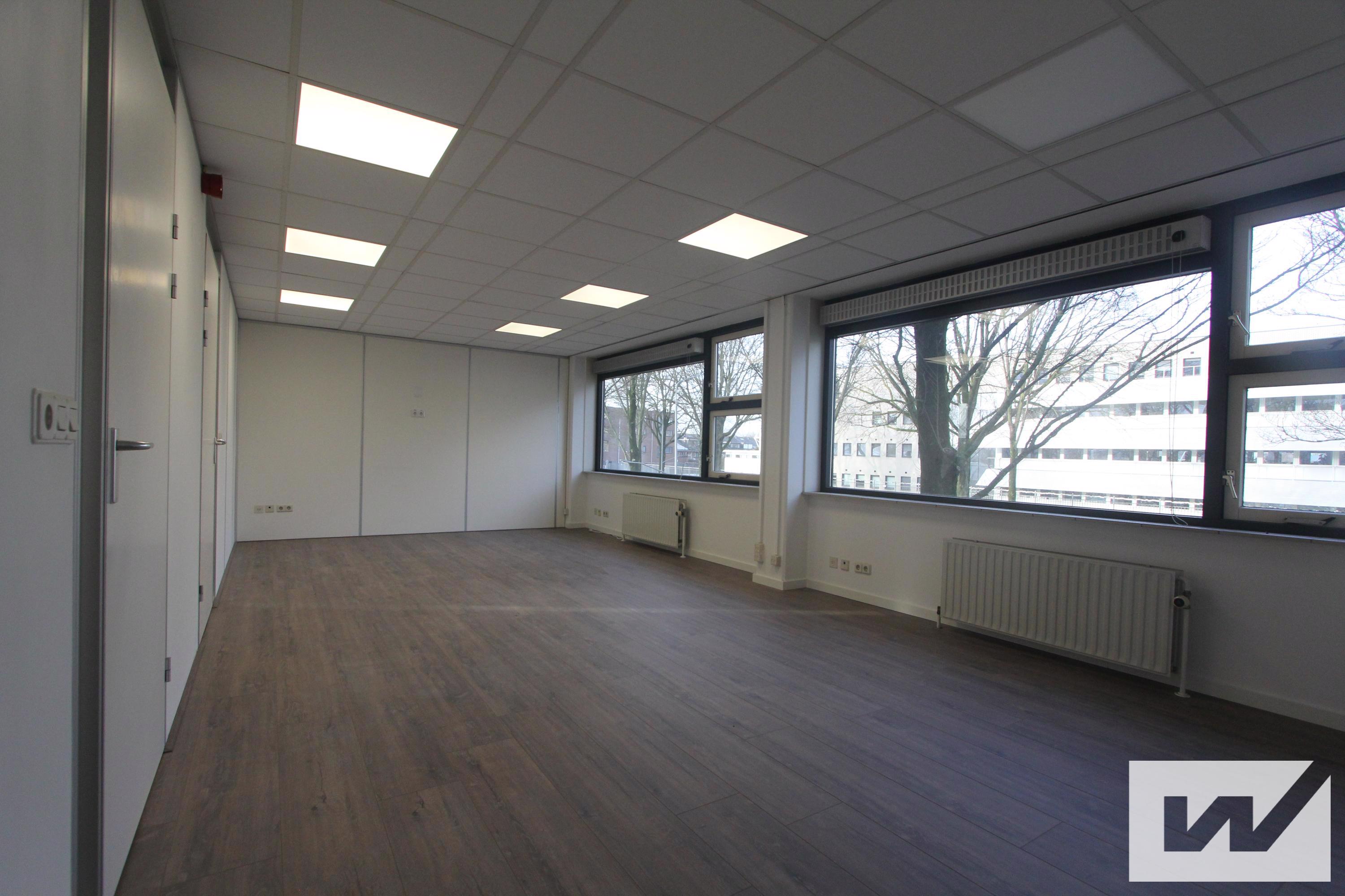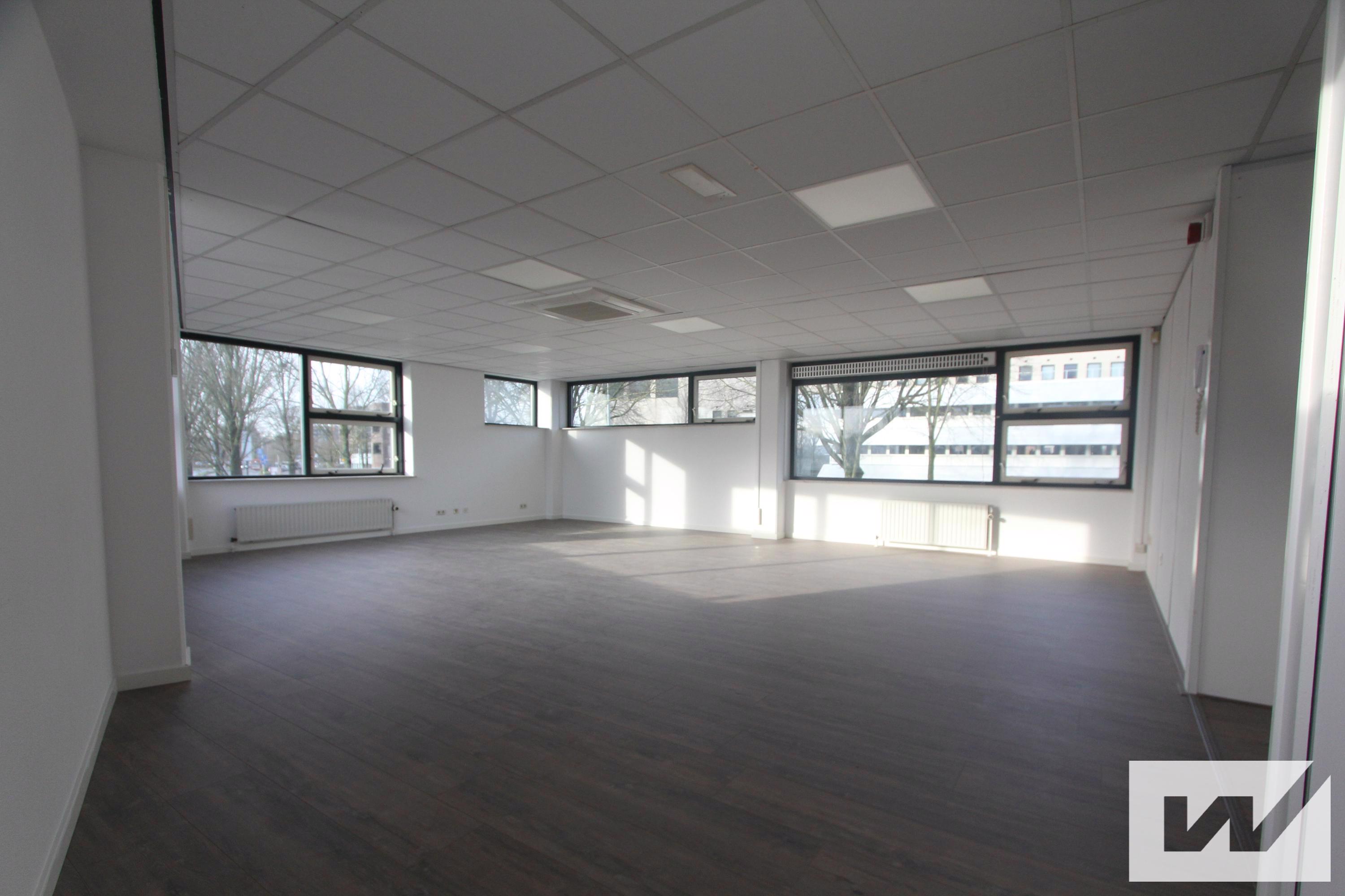 Representatieve kantoorruimte van ca. 260 m² op de eerste verdieping, verdeelt over vijf ruimtes inclusief hal en toiletten. De ruimte is ook in twee delen af te nemen.