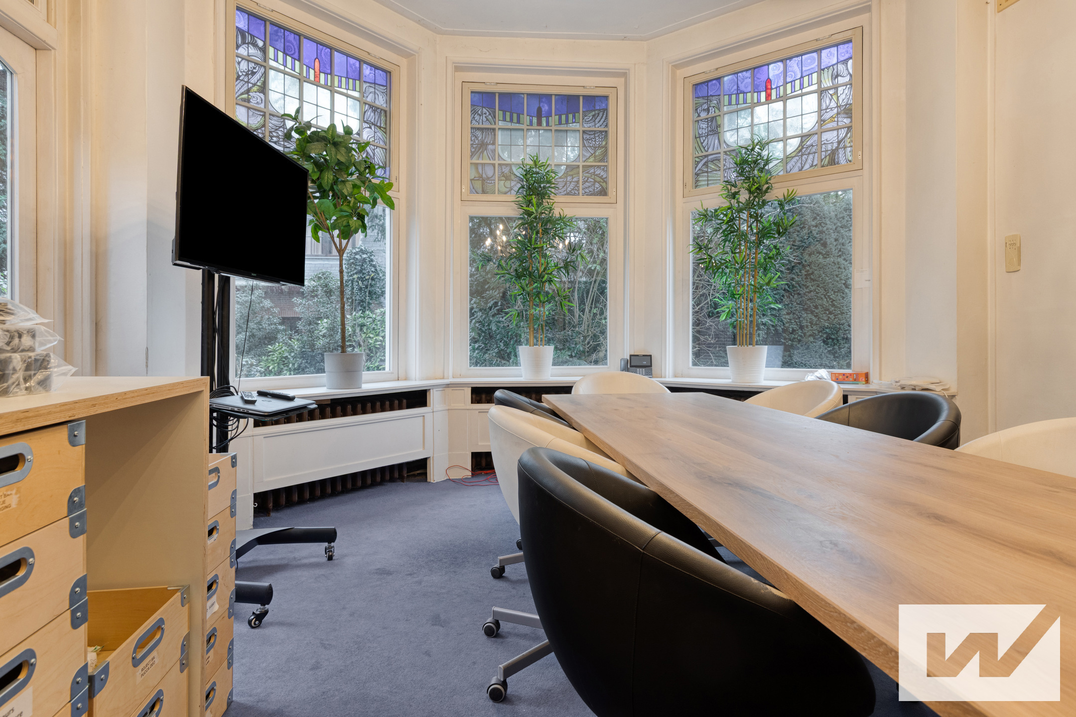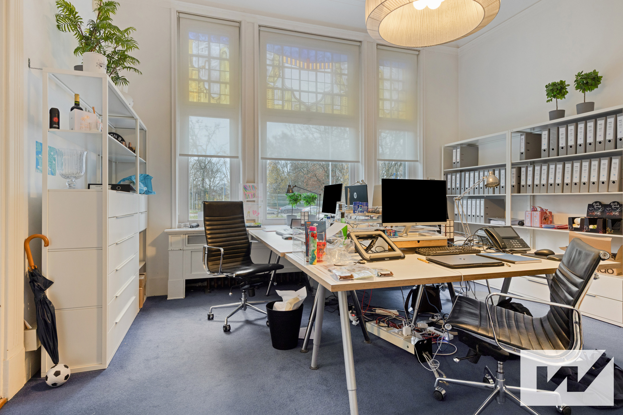De indrukwekkende oprijlaan, de groene omliggende tuin en de royale parkeergelegenheid op eigen terrein versterken het exclusieve karakter van deze unieke kantoorlocatie. Binnen wacht een combinatie van authentieke allure en modern comfort hoge plafonds, grote raampartijen, royale ruimtes en een aangename lichtinval creëren een werkomgeving die inspireert én indruk maakt.