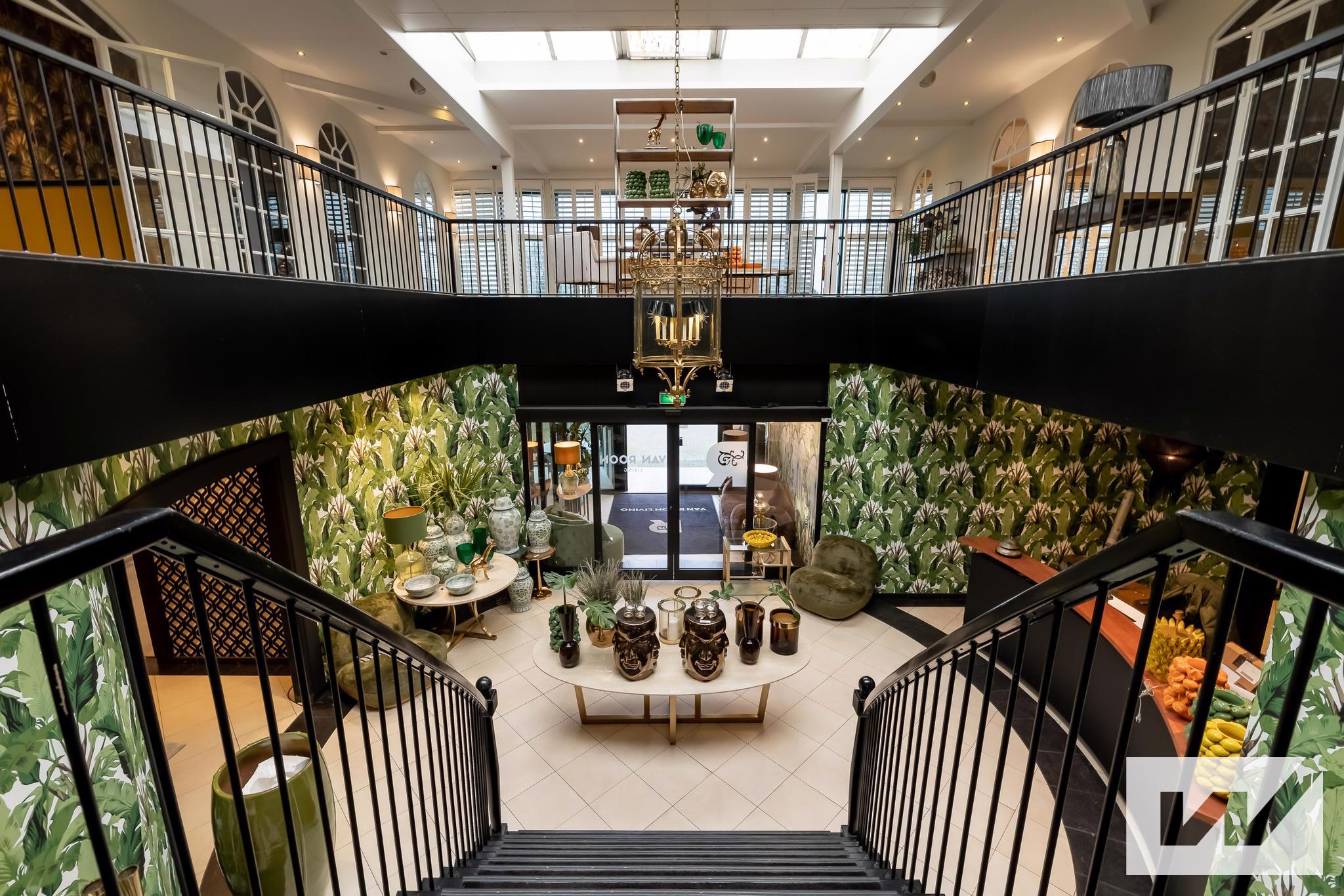 Indeling fase 2: De entree beschikt over een tochtsluis en elektrische schuifdeuren. De royale entreehal heeft een grote trappartij en vide naar de eerste verdieping. Rondom de entreehal bevindt zich luxueus afgewerkte kantoor-/showroomruimte van ca. 806 m² met grote raampartijen. Er is een ontvangstruimte/kantine met een compleet uitgeruste keuken- en baropstelling. De trappartij biedt toegang tot de eerste verdieping van ca. 568 m², eveneens fraai afgewerkt en voorzien van veel natuurlijk licht. De begane grond is voorzien van systeemplafonds met verlichting, terwijl de verdieping afgewerkt is met stucwerk en inbouwverlichting. Vanuit de kantoor-/showroomruimten zijn de achtergelegen bedrijfs-/opslagruimten goed toegankelijk, weke zijn voorzien van loadingdocks en overheaddeuren voor eenvoudig laden en lossen.